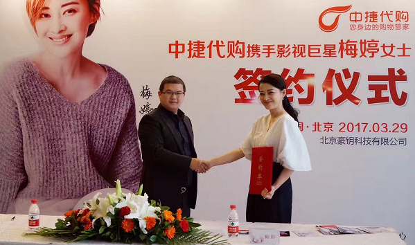 女士舉行了簽約儀式,梅婷簽約為中捷代購品牌形象大使。