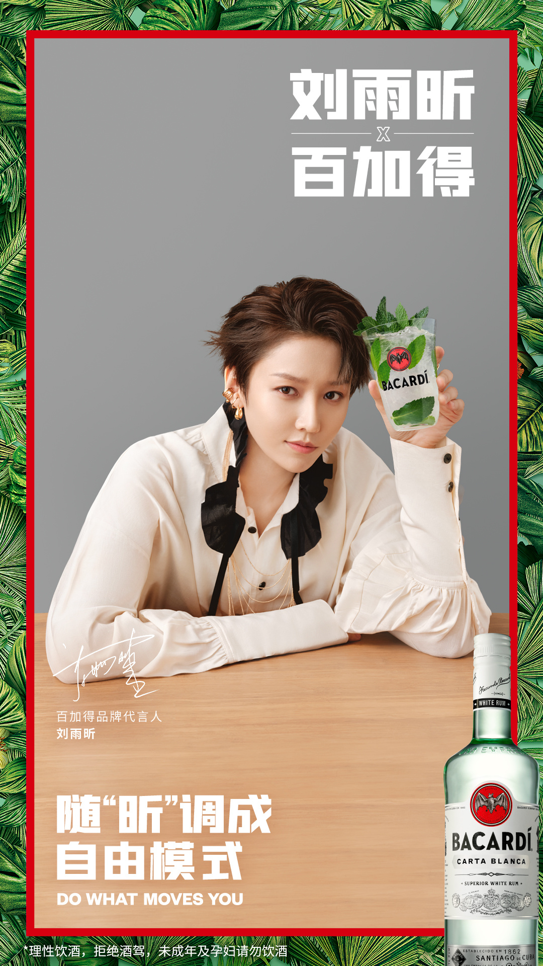 5 月 13 日,百加得朗姆酒官宣劉雨昕為品牌代言人,并發(fā)布由其出演的品牌大片。在片中,劉雨昕化身專業(yè)調(diào)酒師與音樂(lè)人,在動(dòng)感的音樂(lè)中與周圍人在一起在舞臺(tái)上自由馳騁。作為年輕偶像中松弛真誠(chéng)的代表,百加得朗姆酒看中了劉雨昕與品牌內(nèi)核的吻合,并將在未來(lái)和代言人一起用將獨(dú)一無(wú)二的朗姆之聲,隨「昕」調(diào)成自由模式,繼續(xù)尋找獨(dú)一無(wú)二的自我。