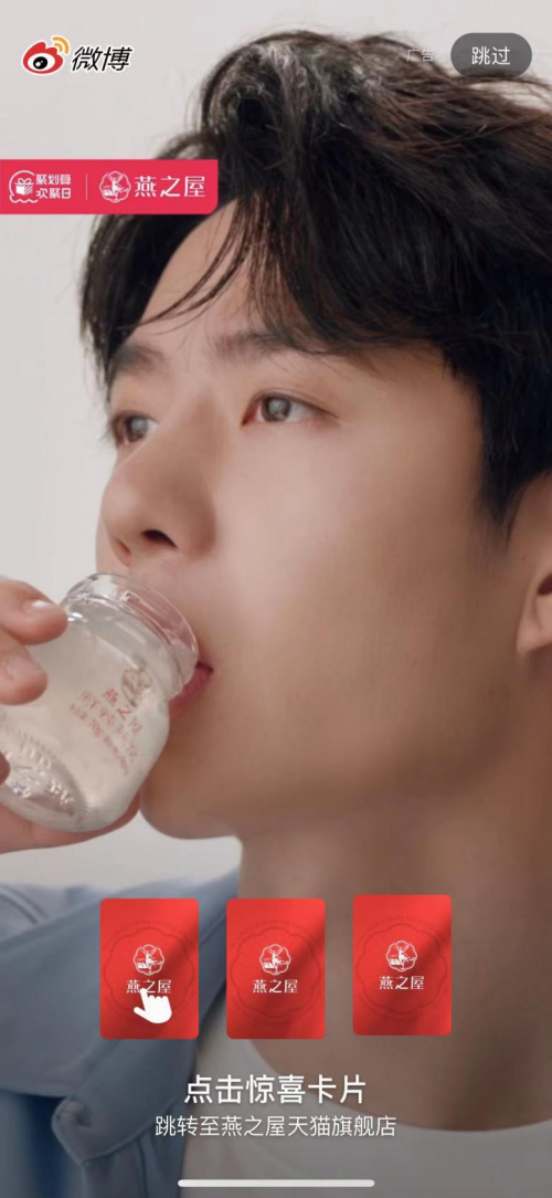 5月20日,燕之屋官宣王一博成為全球品牌代言人,全新品牌代言TVC大片同步釋出,由王一博鮮活開啟燕之屋520“鮮”愛自己計(jì)劃。官宣當(dāng)日,燕之屋與王一博于微博發(fā)布官宣博文,同時(shí)微博上線官宣開屏廣告,話題#王一博燕之屋全球品牌代言人#沖上微博熱搜。