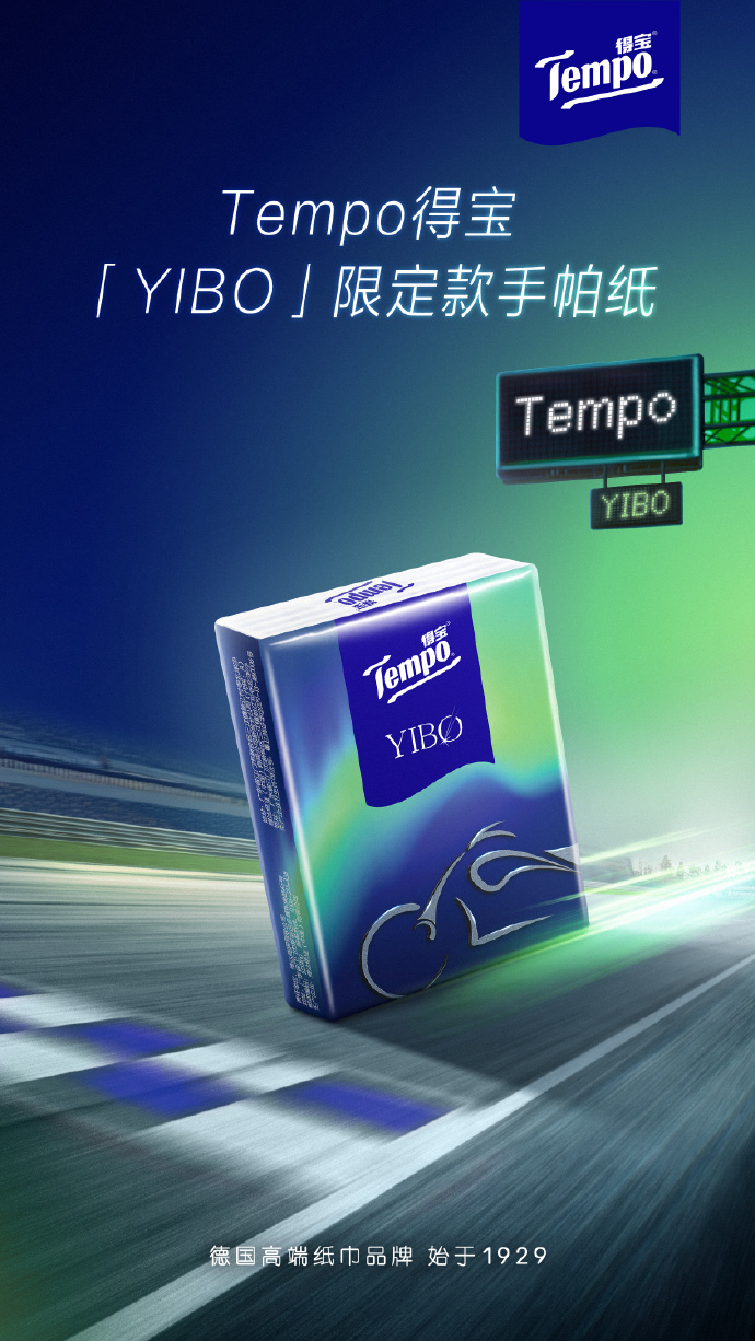 同期,Tempo 得寶推出王一博限定款 YIBO 手帕紙,印有璀璨綠與得寶藍設(shè)計印花,包裝印有摩托車車型紋樣,與王一博的率性氣質(zhì)相呼應(yīng)。Tempo 得寶攜手天貓超級品牌日推出「一路生花」「與博同行」「王炸 de 寶」等明星套組,附贈藝人立牌小卡周邊,加碼官宣代言活動。