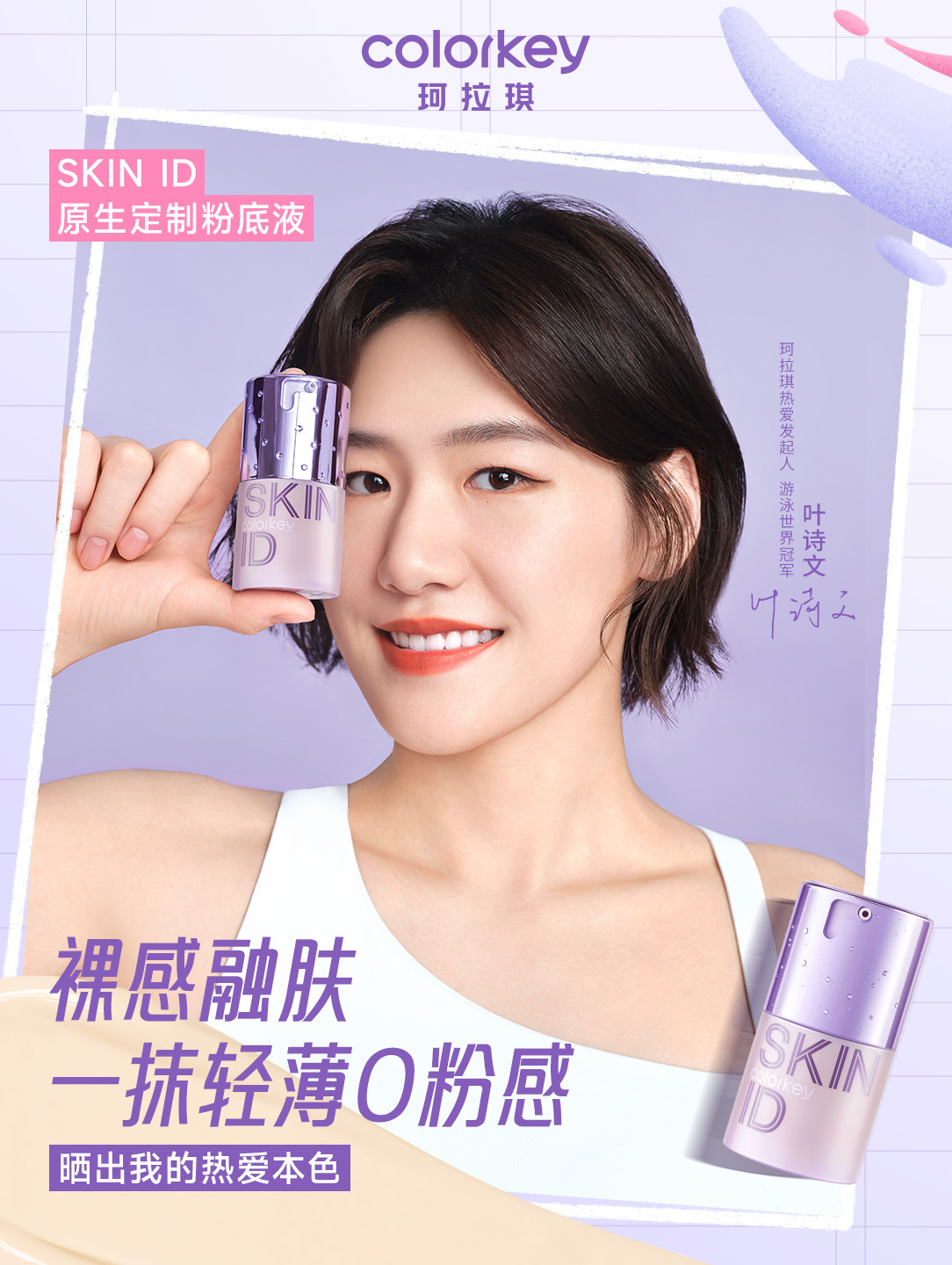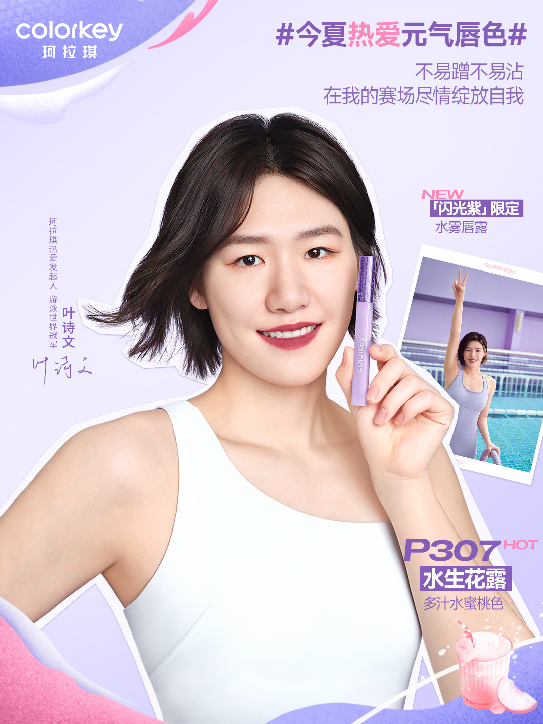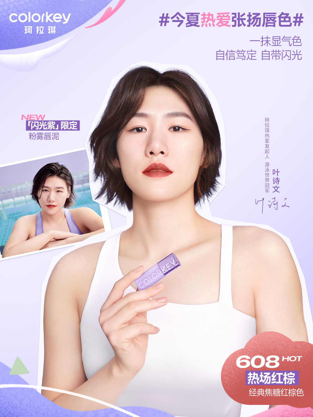7 月 10 日,Colorkey 珂拉琪正式官宣游泳運(yùn)動(dòng)員葉詩(shī)文(明星代言公司)為品牌熱愛(ài)發(fā)起人,同步推廣品牌全新「閃光紫」限定系列。當(dāng)在色彩上不斷鉆研的 Colorkey 珂拉琪遇上因熱愛(ài)攀上巔峰的「泳」者葉詩(shī)文 ,二者將共同掀起潮流運(yùn)動(dòng)熱潮,帶上專(zhuān)屬熱愛(ài)「妝」備,一起「投入熱愛(ài) 自在閃光」。