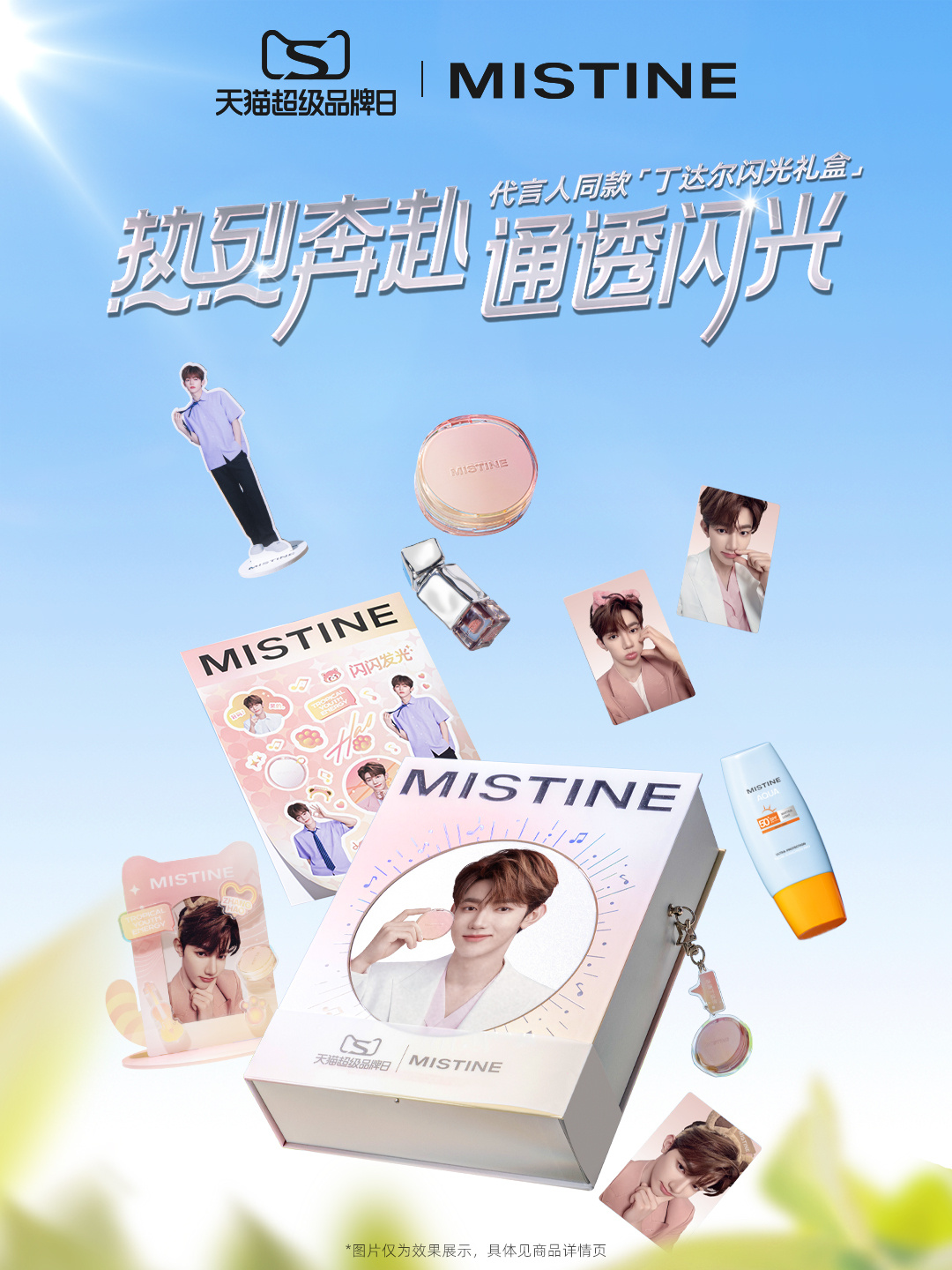MISTINE 攜手天貓超級品牌日為新品「冰透丁達爾」限定系列氣墊打造上新優(yōu)惠,并打造代言人明星周邊、小熊發(fā)箍等禮贈,拓展 MISTINE 在夏日防曬之外的多元品類,為夏日營銷帶來藝人新聲量。