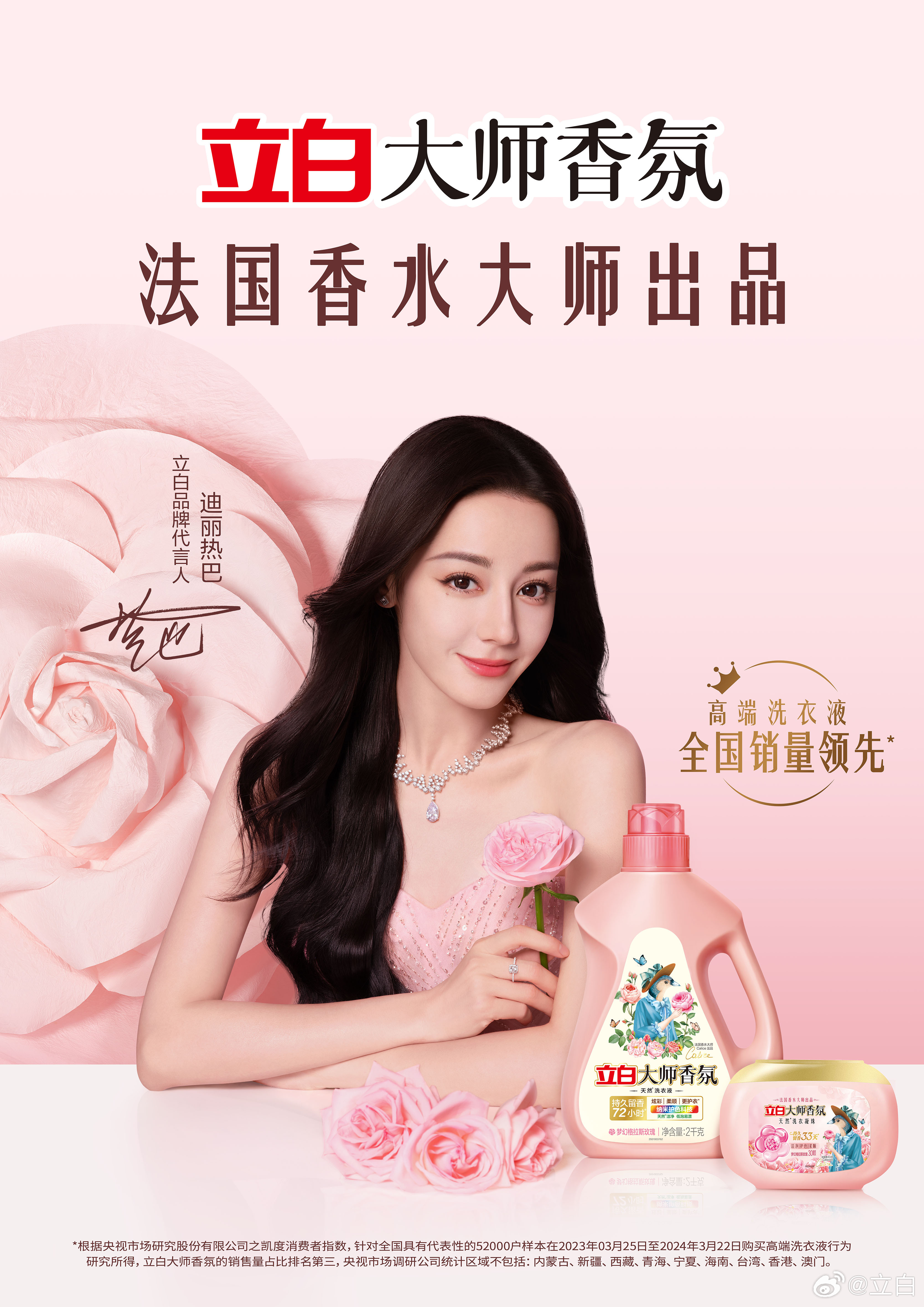 8 月 12 日,立白正式官宣迪麗熱巴(明星代言公司)為品牌代言人,同步推廣立白大師香氛系列產(chǎn)品,邀請消費者一起「穿上我愛的香」。據(jù)悉,此次的香氛系列源自法國格拉斯的玫瑰香氣,讓消費者在清潔衣物的同時,感受香與時尚的無限感官之美。同時,立白將一起攜手代言人探索更多時尚穿香秘訣,讓香與時尚,隨衣綻放。
