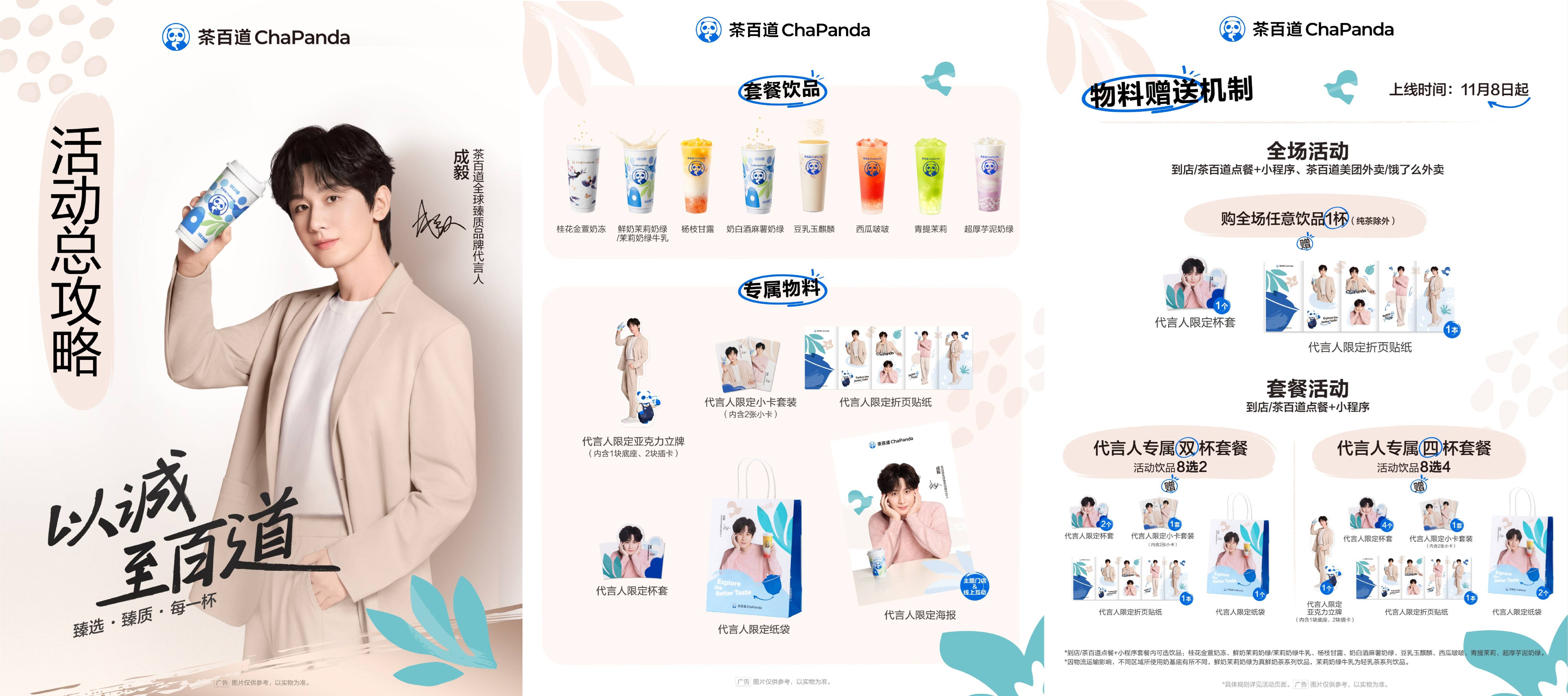 為慶祝代言人正式官宣,茶百道同步上線了限定包裝和限定周邊物料,包括紙袋、杯套、折頁貼紙 、小卡套裝(內(nèi)含 2 張小卡)、亞克力立牌等,粉絲可以通過購買對應(yīng)產(chǎn)品獲得對應(yīng)周邊,將熱愛隨身攜帶。與此同時,線下現(xiàn)象級地標和全國大屏、機場、地鐵、公交廣告,也將聯(lián)動上線代言人大片,歡迎粉絲朋友們?nèi)グl(fā)現(xiàn)、去解鎖、去記錄身邊的臻質(zhì) Yi 刻!