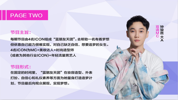 《OMB我是你的藍(lán)朋友》是一檔明星為素人造夢的綜藝節(jié)目,由四位ICON組成“藍(lán)朋友天團(tuán)”,分別是常駐MC,美妝達(dá)人、時尚造型師和年輕流量小鮮肉。