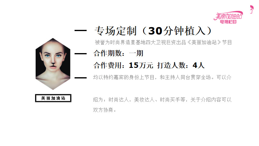 《美麗加油站》是一檔具有國際化性質(zhì)的生活服務類高端時尚節(jié)目。節(jié)目每一期一個時尚主題,邀請知名演員,設計師,時尚達人,著名護膚美容師及網(wǎng)紅等和主持人共同探討,分享。。。
