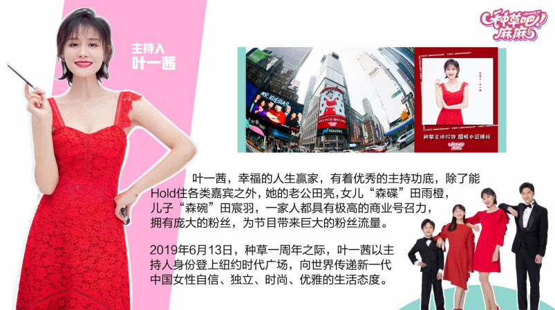 《種草吧麻麻》中國內(nèi)地知名女歌手、主持人、演員葉一茜強(qiáng)勢加盟,節(jié)目每期邀請一位明星媽媽帶團(tuán)助陣,全能辣媽葉一茜與明星媽媽帶團(tuán)種草,一起探索家庭智慧,分享時尚媽媽們的生活方式。