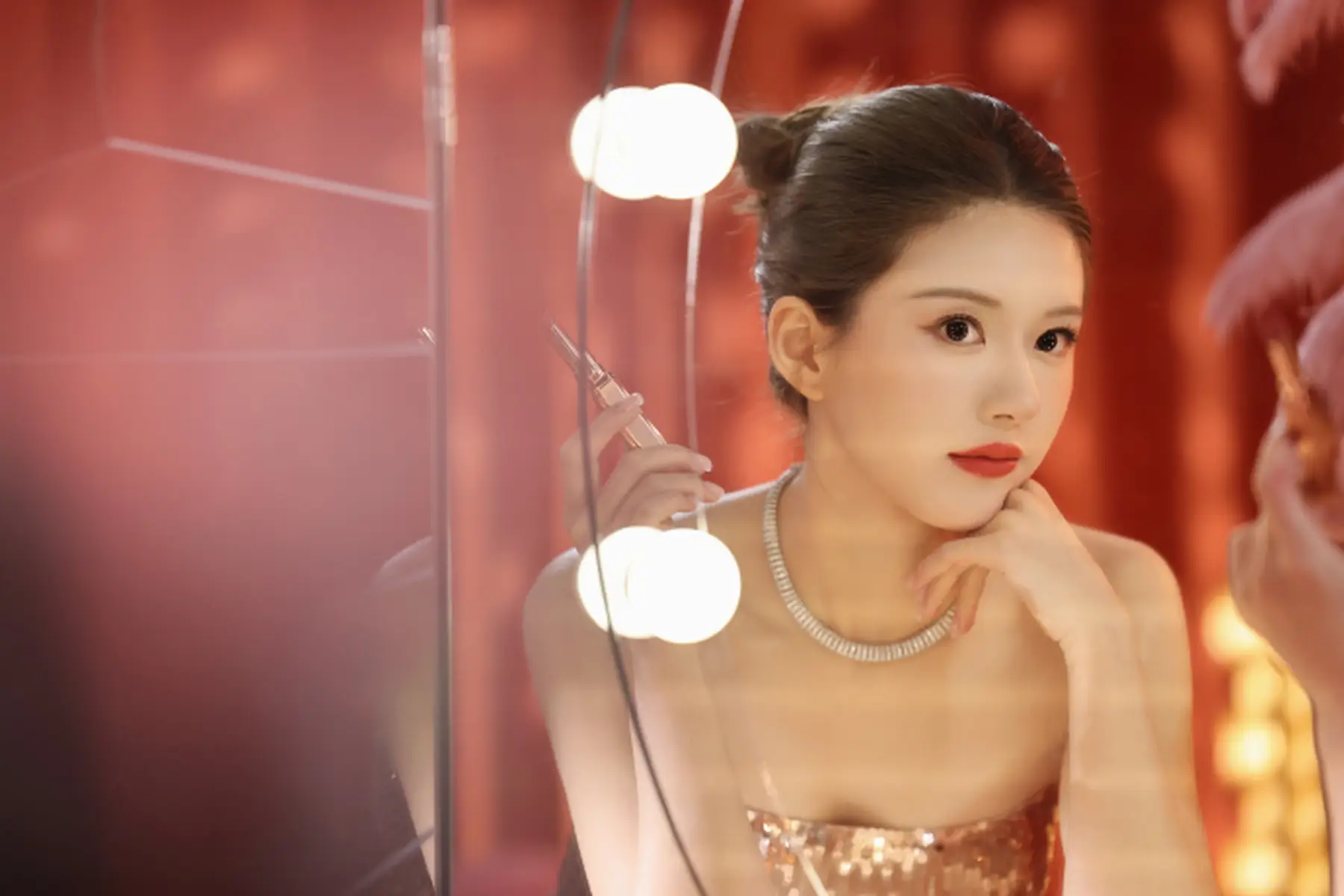 趙露思身穿抹胸亮片禮服搭配高盤發(fā)造型 身材曼妙千金感十足