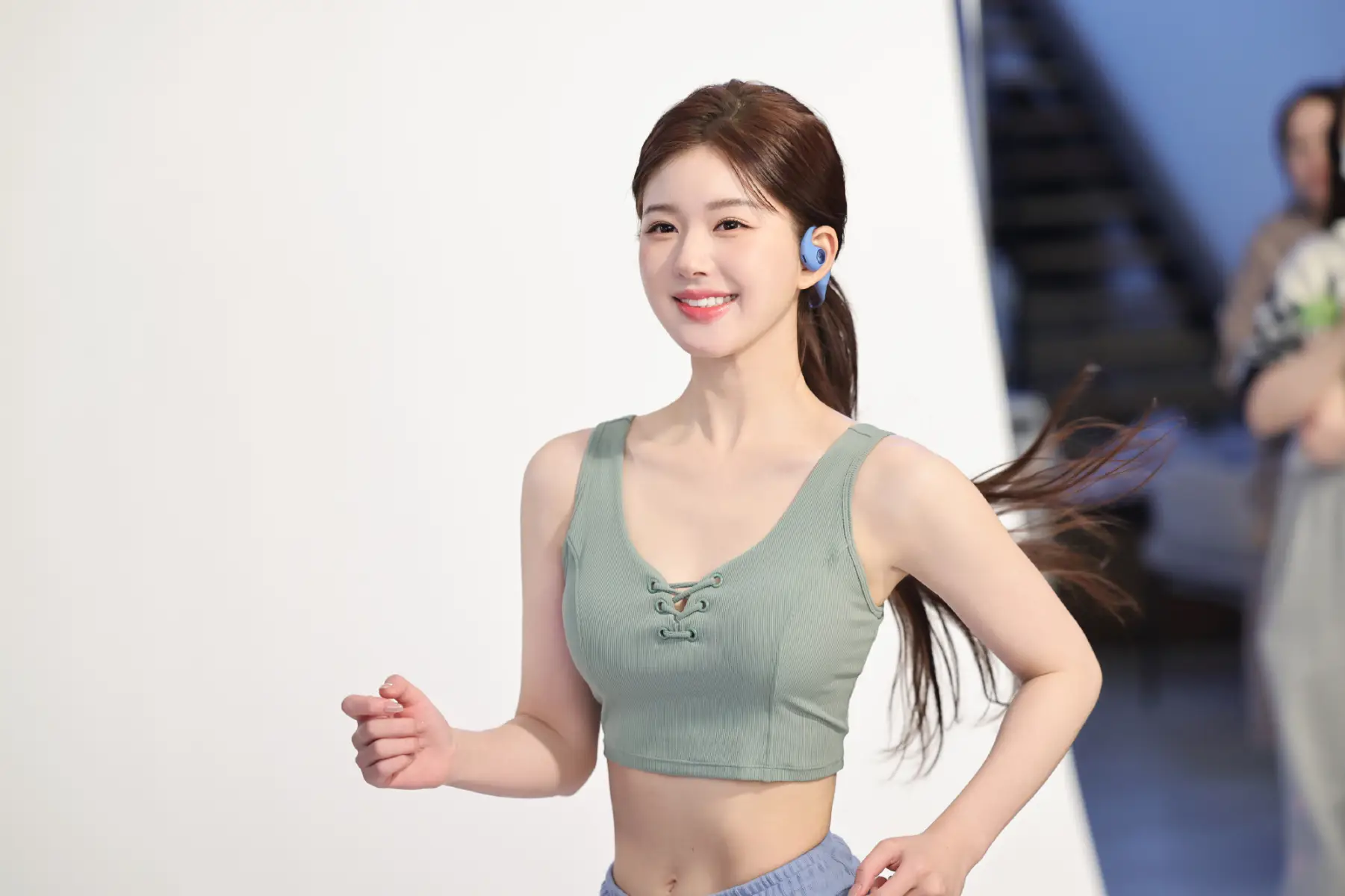趙露思梳低馬尾好元?dú)?搭薄荷綠背心秀出馬甲線
