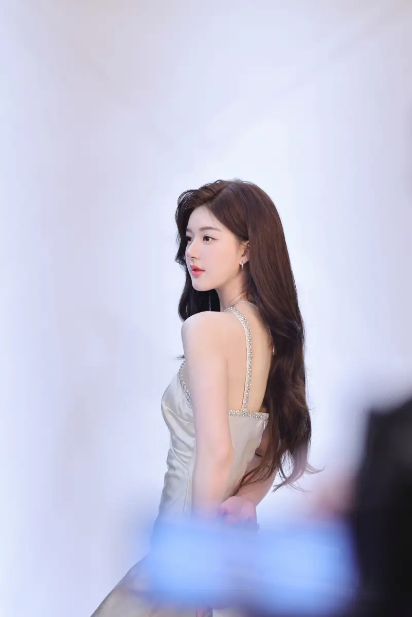 趙露思穿抹胸裙子,肩頸線條優(yōu)美。