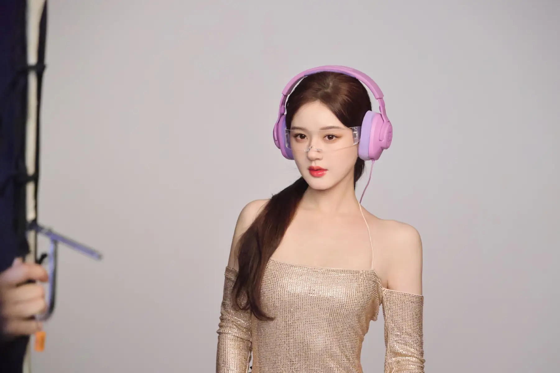 趙露思戴紫色耳機(jī),潮流時(shí)尚。