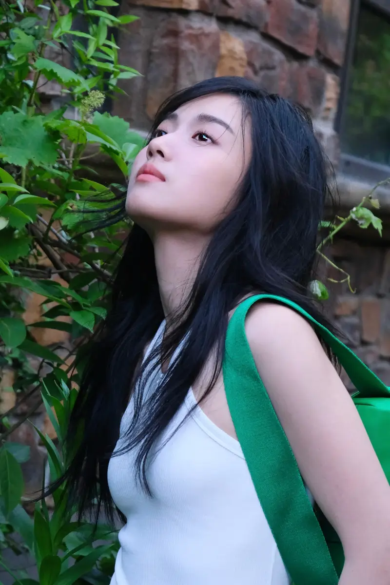 盧昱曉午后綠意大片釋出 淡妝烏發(fā)宛如叢林精靈