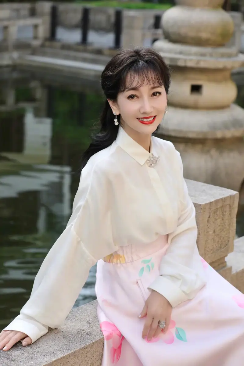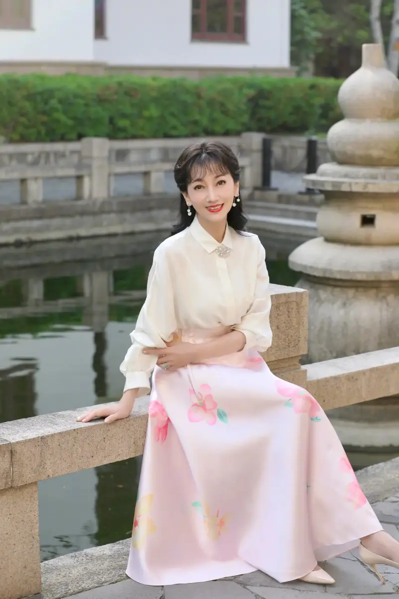 趙雅芝仰頭看天,儀態(tài)優(yōu)雅迷人。