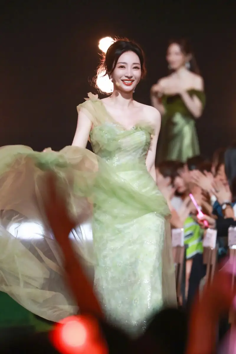 柳巖曬《浪姐》收官夜花絮 穿綠色斜肩裙優(yōu)雅奪目