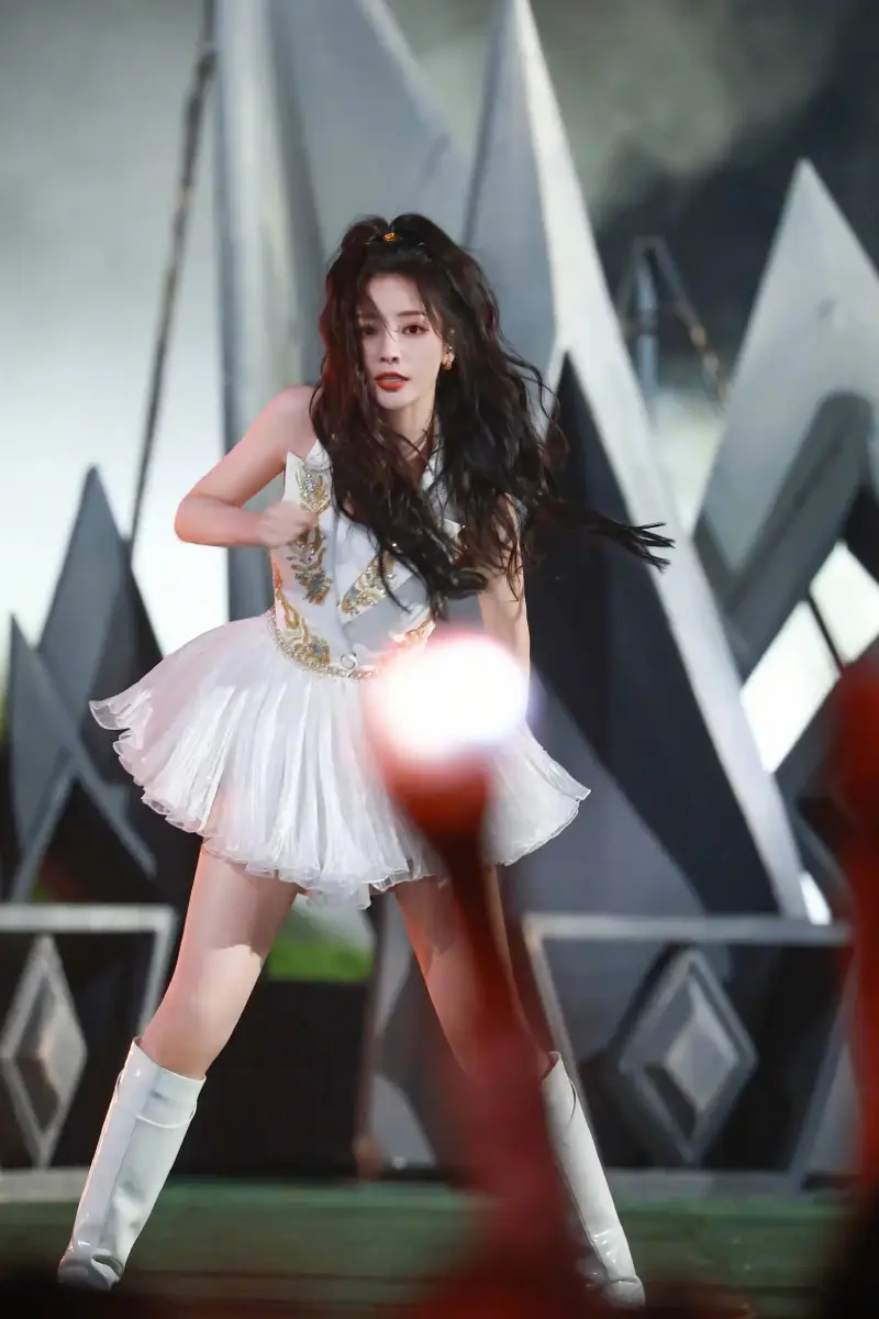 柳巖在舞臺(tái)上熱舞。