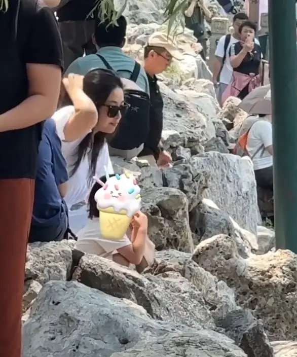 7月7日,有網(wǎng)友在北海公園偶遇了朱珠一家。