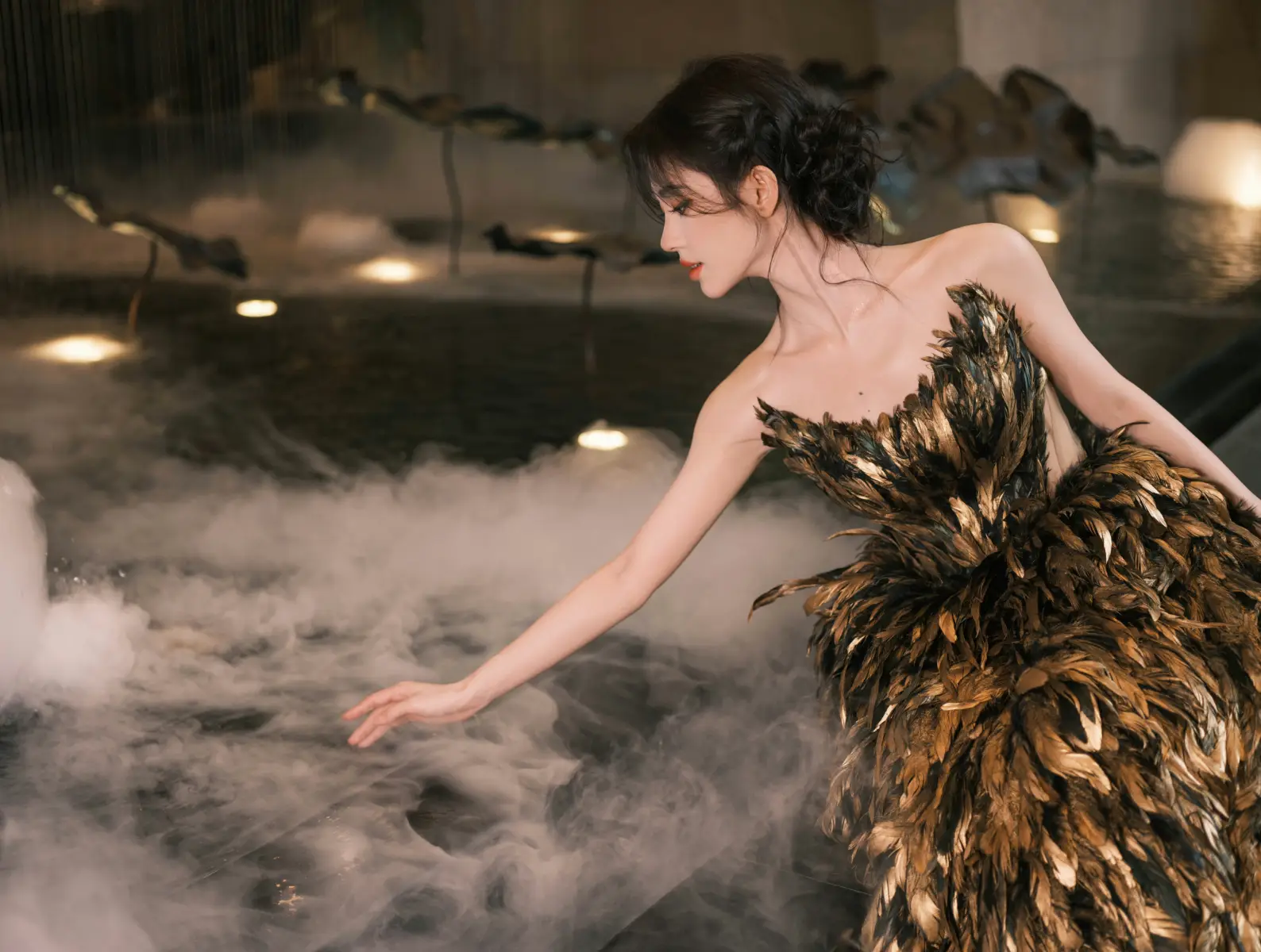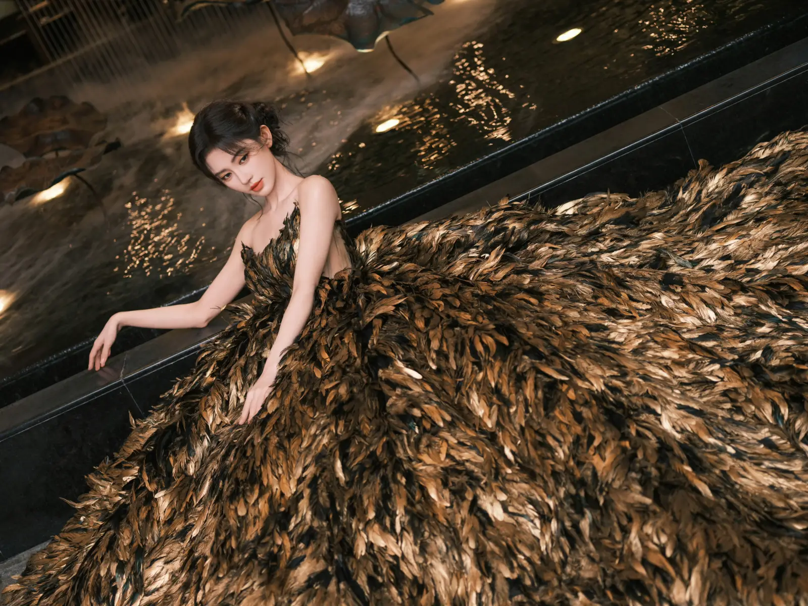 7月10日,鞠婧祎(明星經(jīng)紀公司)office發(fā)布一套組圖。照片中,鞠婧祎身著黑金色羽毛點綴的抹胸大擺晚禮服,露出纖長的脖頸和手臂,身姿優(yōu)美氣質(zhì)高貴。