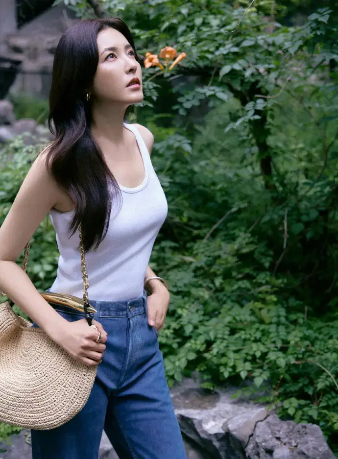 曾黎時尚感十足,和牛仔套裝適配度拉滿。