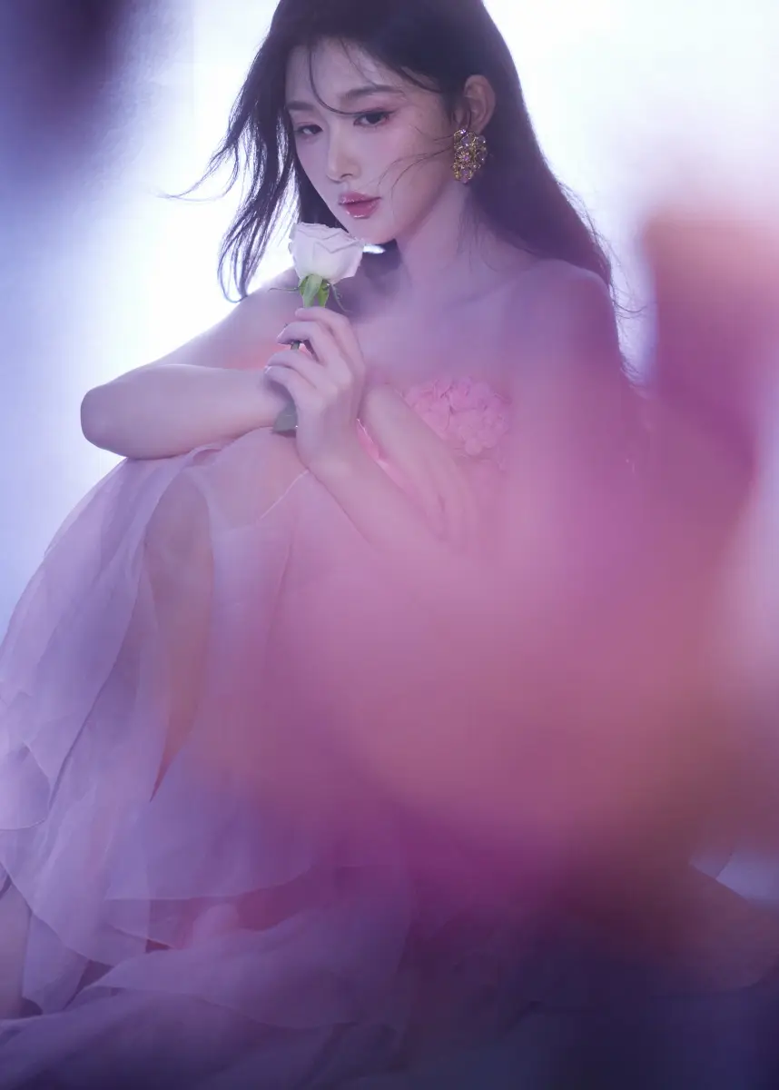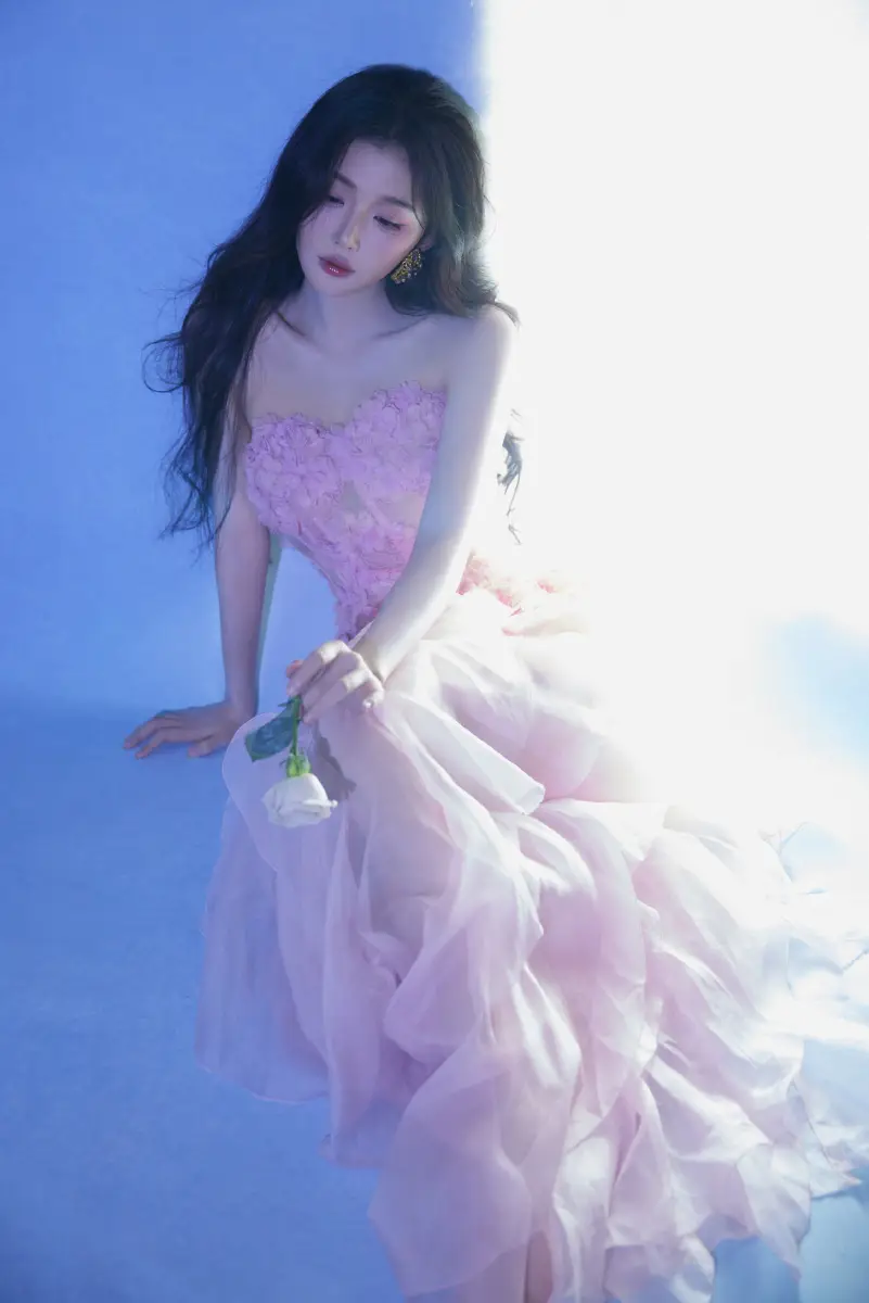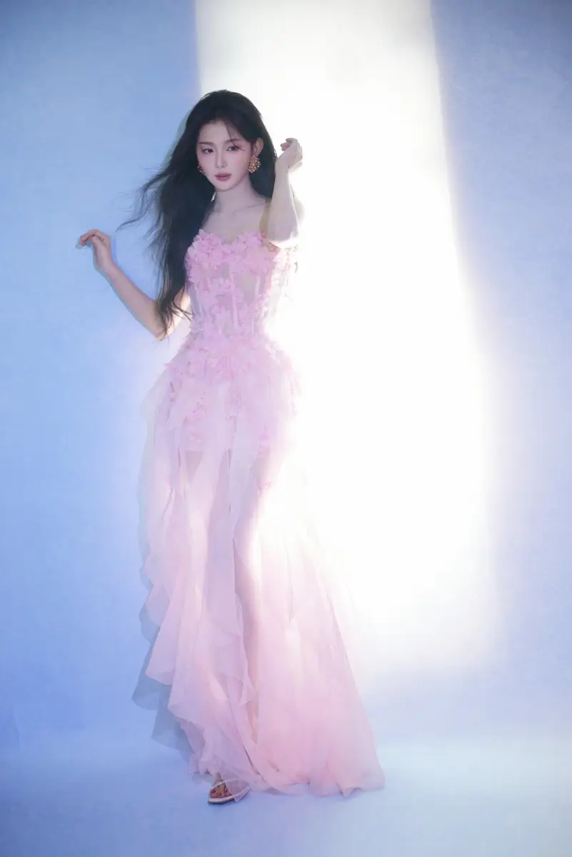 孔雪兒穿粉色抹胸裙仙氣十足 美腿若隱若現(xiàn)好撩人