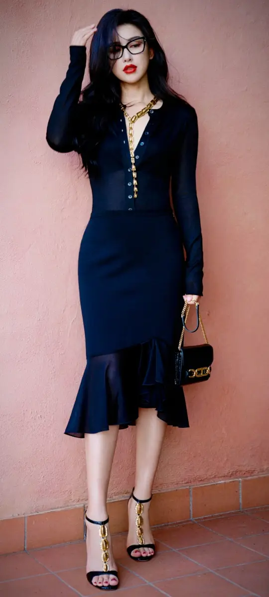 朱珠穿修身小黑裙腰肢纖細。
