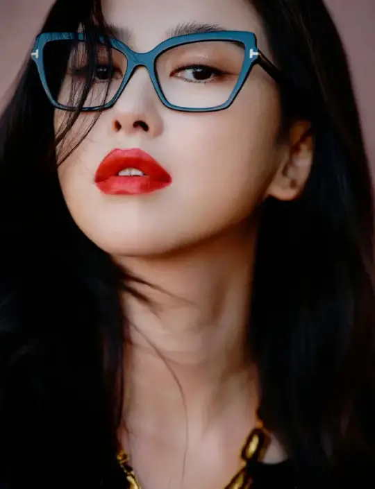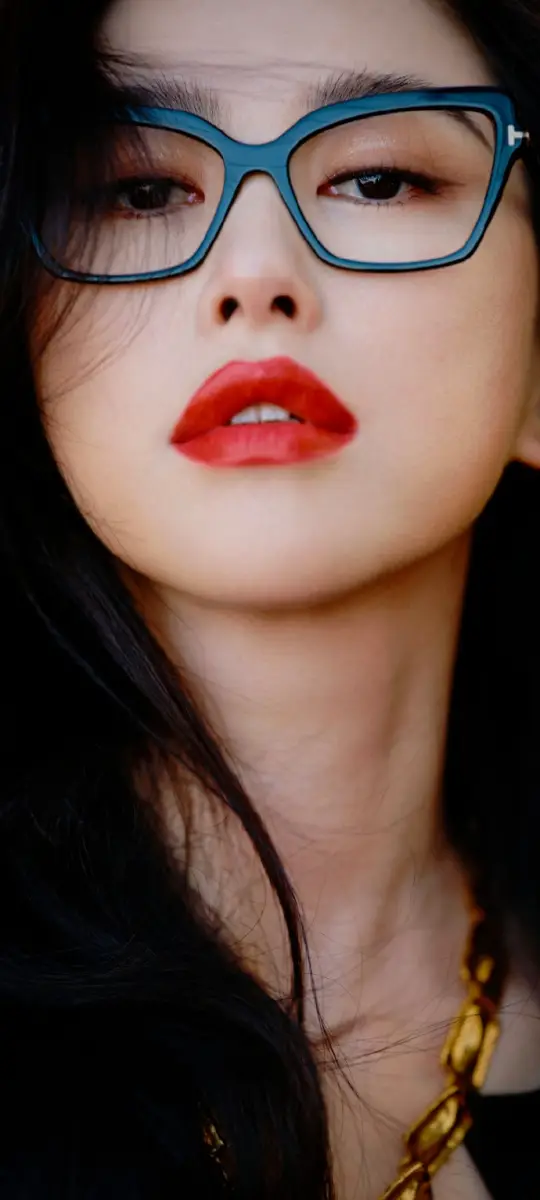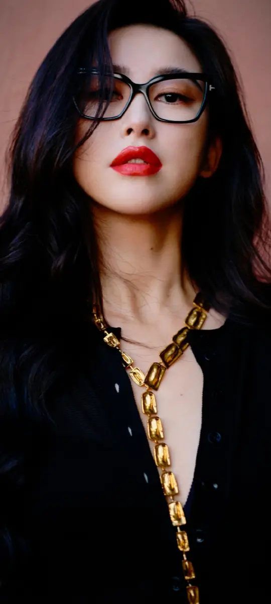 朱珠紅唇金鏈造型嫵媚優(yōu)雅 戴黑框眼鏡高知感拉滿