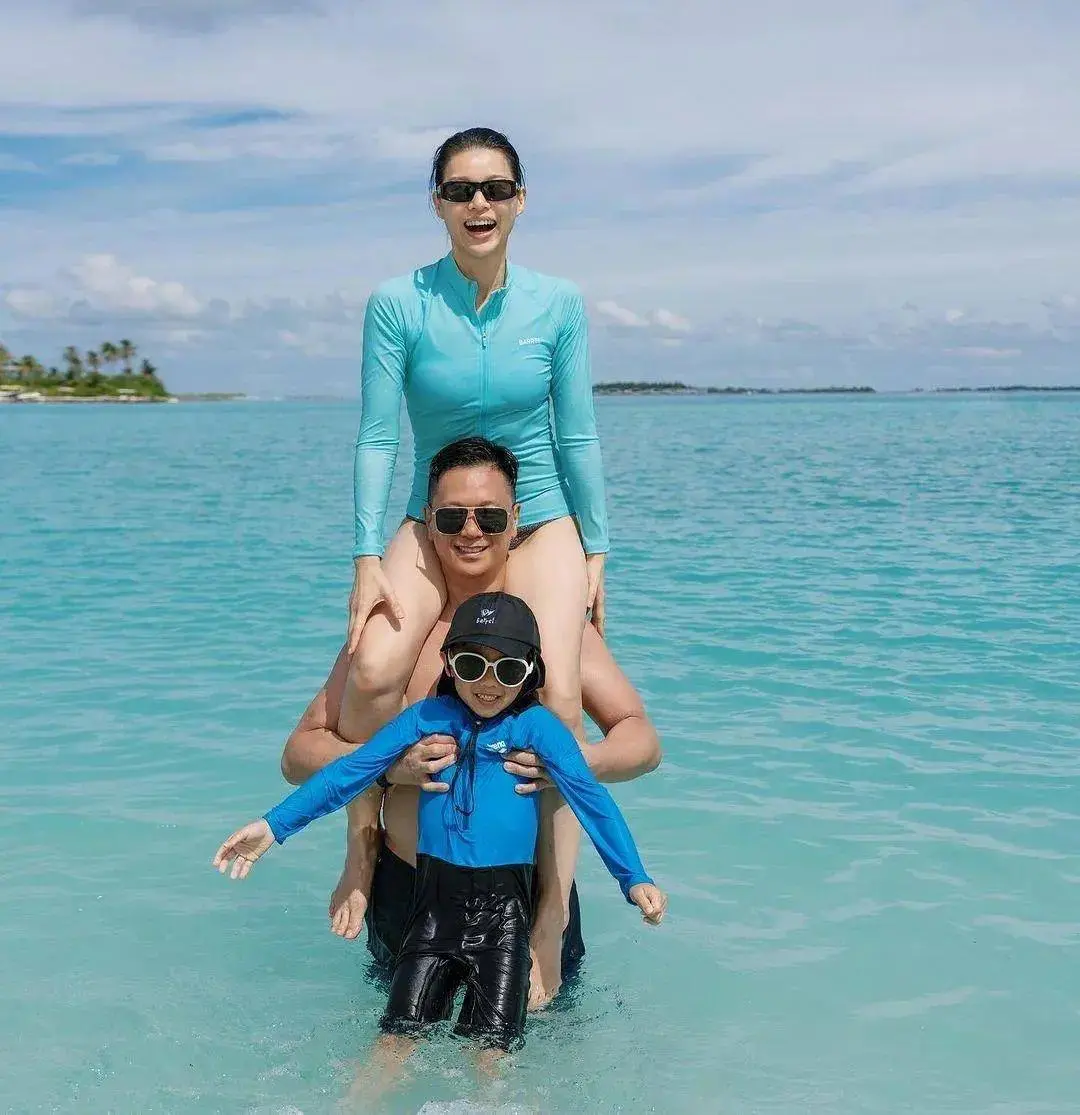 到馬爾代夫旅游,自然少不了去海邊玩。從胡杏兒曬出的照片能夠看到,他們一家五口在海邊玩得很開心。