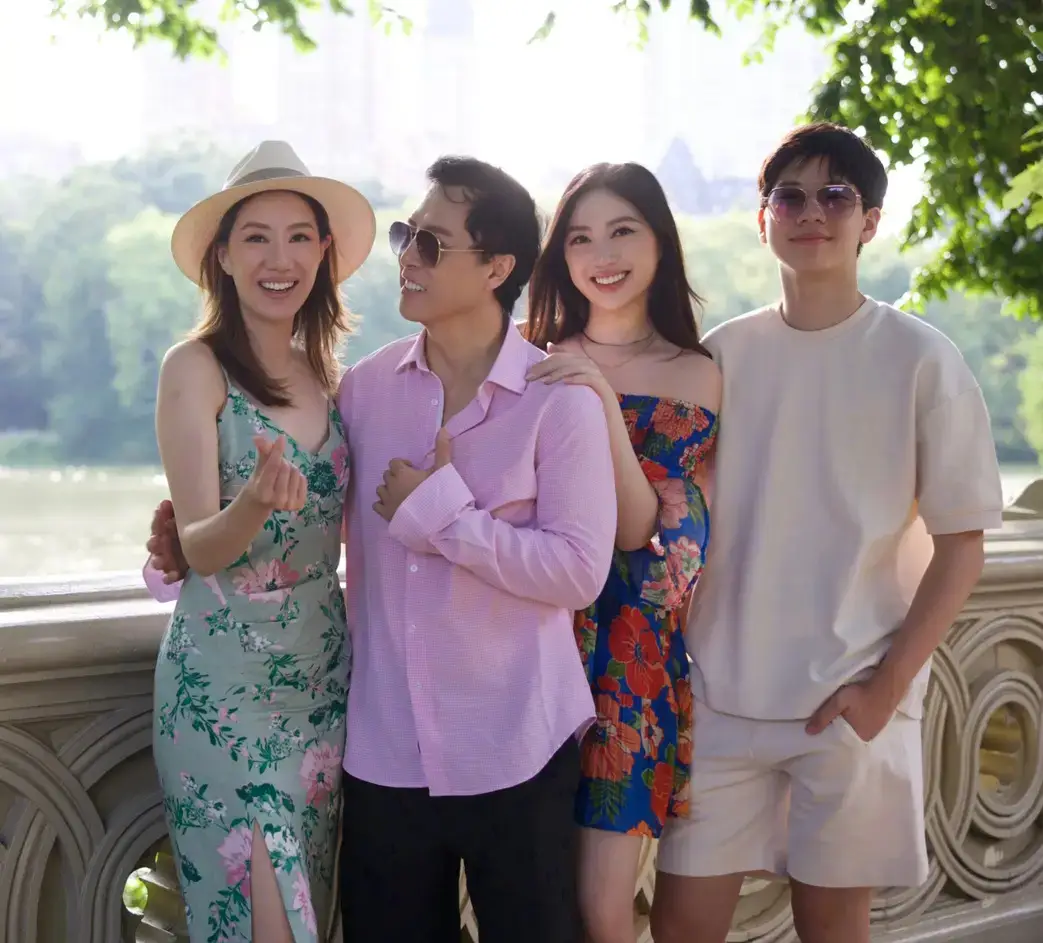 甄子丹和家人合照,家庭美滿。