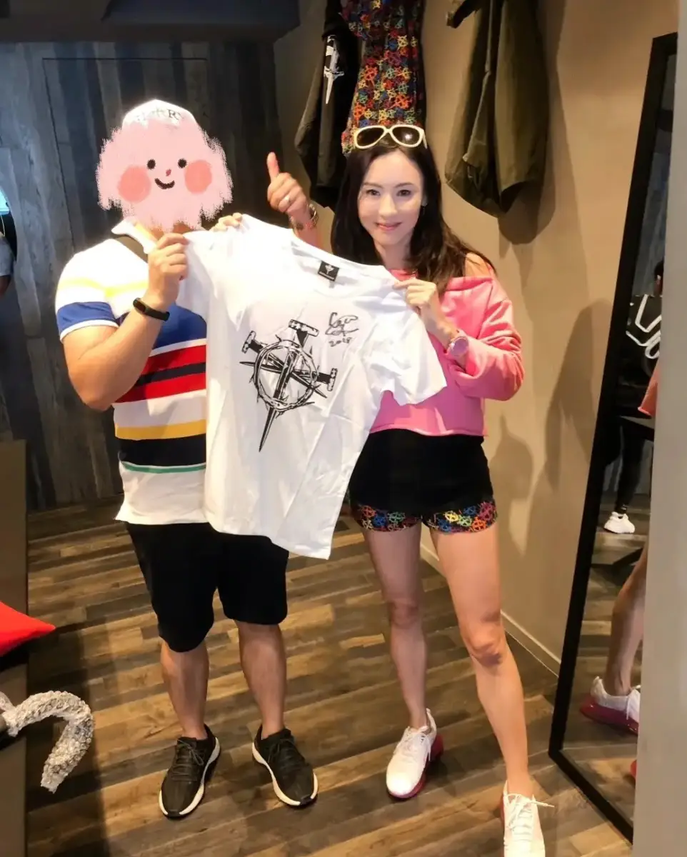 張柏芝與顧客合影。