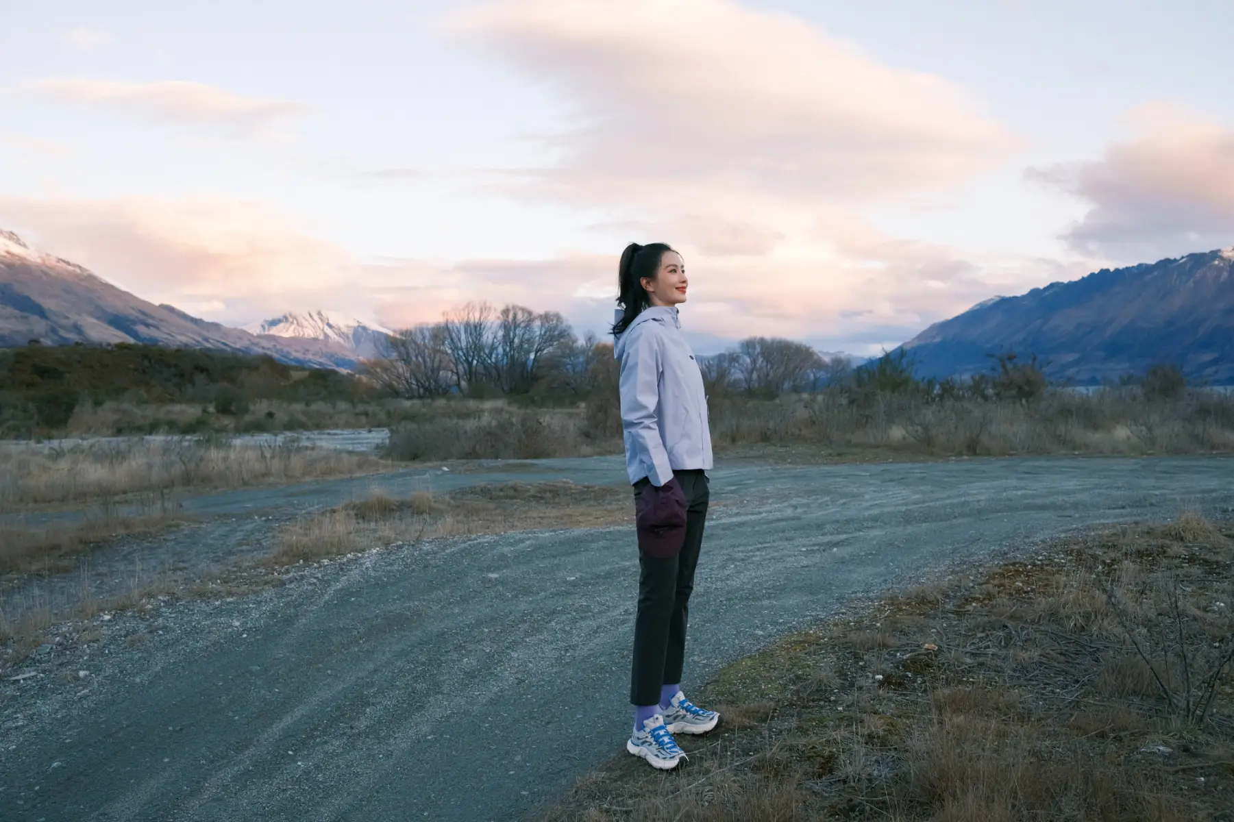 劉詩詩穿運動套裝漫步野外 放空自我與自然共鳴