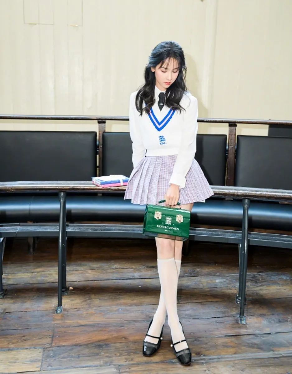 陳都靈曬時裝周造型圖 學(xué)院風(fēng)穿搭夢回南航?;?!