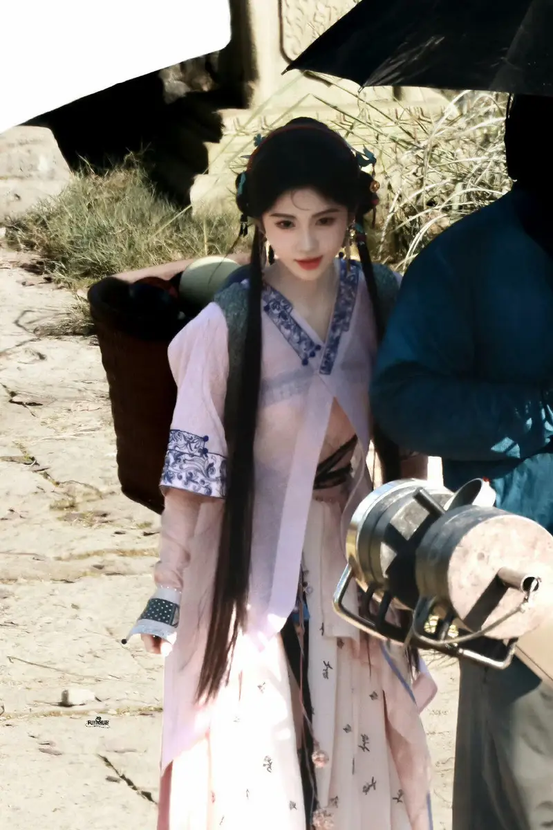鞠婧祎穿新中式古風(fēng)襦裙清冷迷人 背著書箱表情靈動活潑