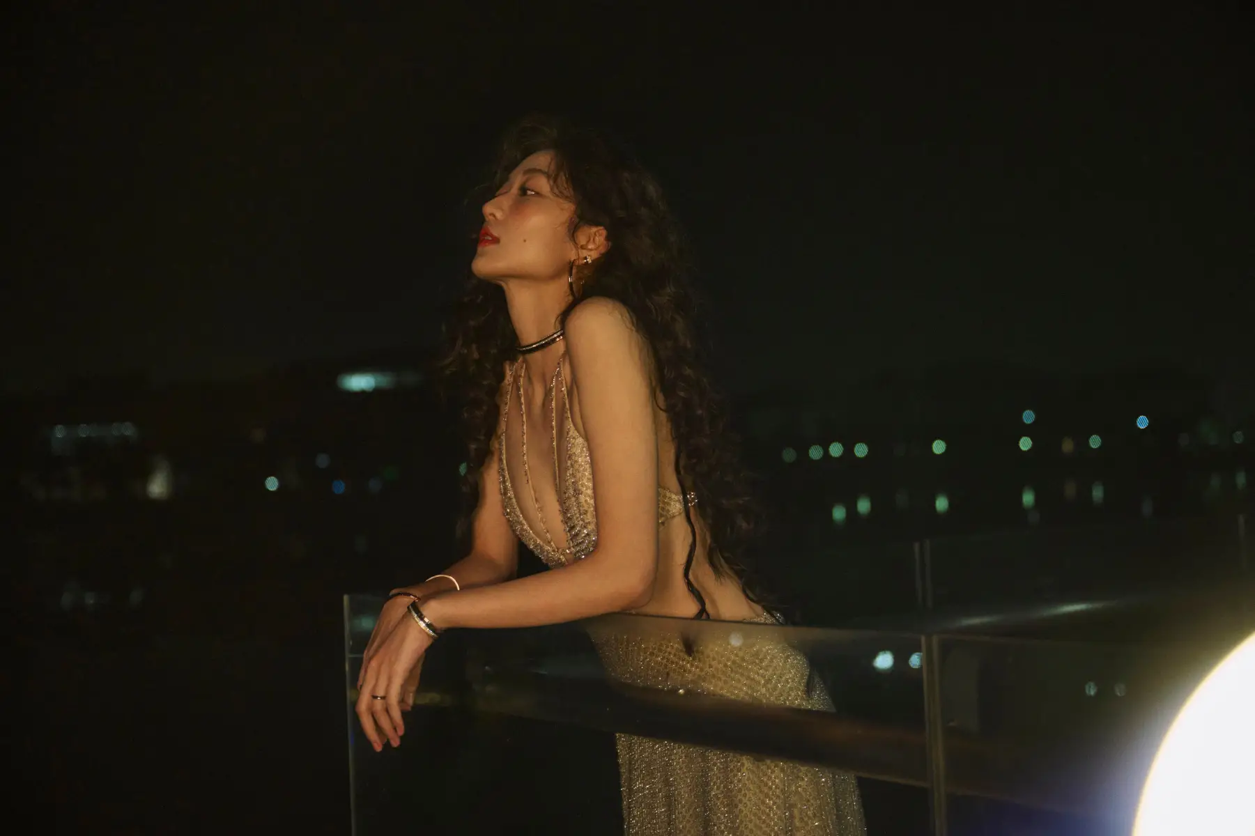 張鈞甯穿亮片禮裙曲線曼妙 染黑色美甲性感酷辣