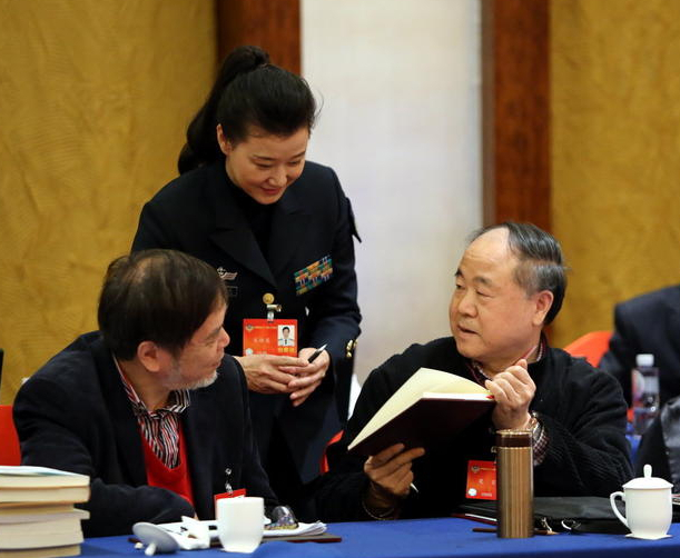 宋祖英利用會(huì)議間隙向莫言索要簽名