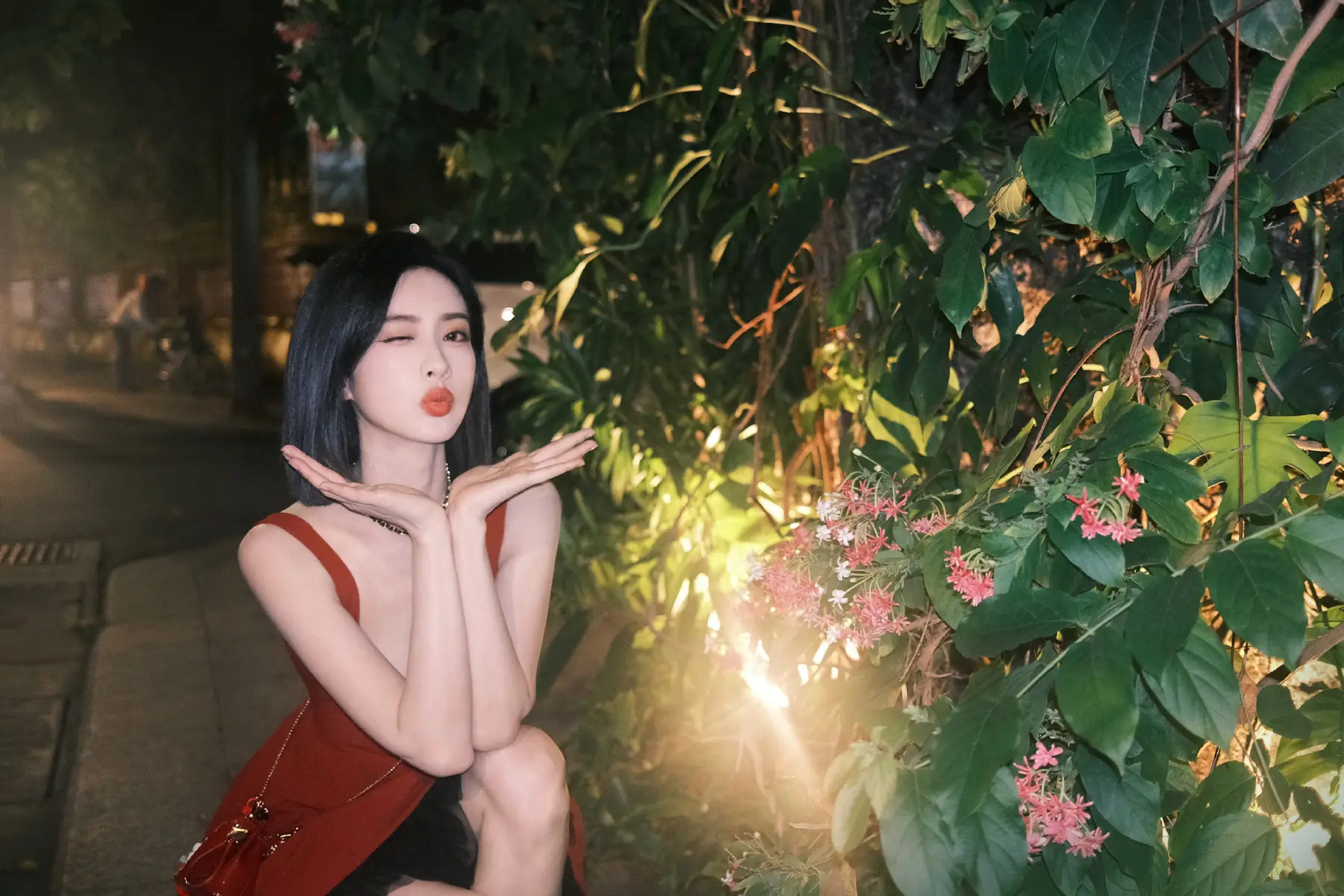 孟子義曬元宵節(jié)營(yíng)業(yè)美照 穿紅色吊帶裙嘟嘴親親好養(yǎng)眼