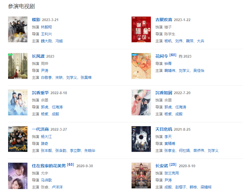 代表作品:新還珠格格、花非花霧非霧、愛(ài)的階梯、仙劍云之凡、獨(dú)步天下、隋唐英雄、明天你好、河豚