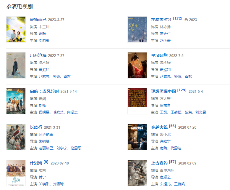 代表作品:旋風(fēng)少女、瑯琊榜、長(zhǎng)歌行、穿越火線、仙劍客棧、影、沙海、盛夏未來(lái)、家有外星人、淘氣包馬小跳