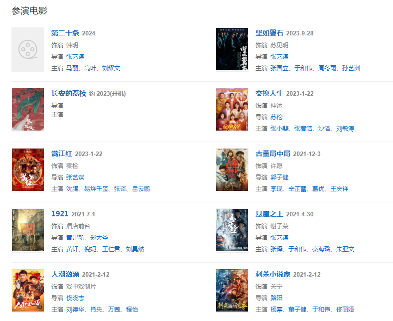 代表作品:黃金大劫案、超時(shí)空同居、刺殺小說家、長(zhǎng)安十二時(shí)辰、和平飯店、繡春刀Ⅱ:修羅戰(zhàn)場(chǎng)、我的前半生、人世間
