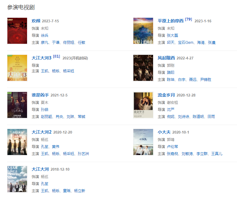 代表作品:青春派、山河故人、大江大河、六弄咖啡館、少年班、乘風(fēng)破浪、流金歲月、恰好是少年