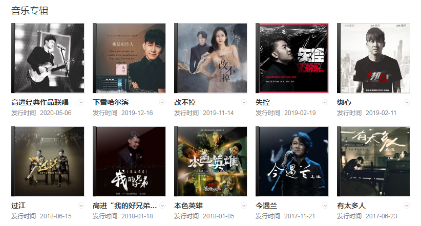 代表作品:我的好兄弟、剛好遇見你、我們不一樣、下雪哈爾濱、差一步、懷念青春等
