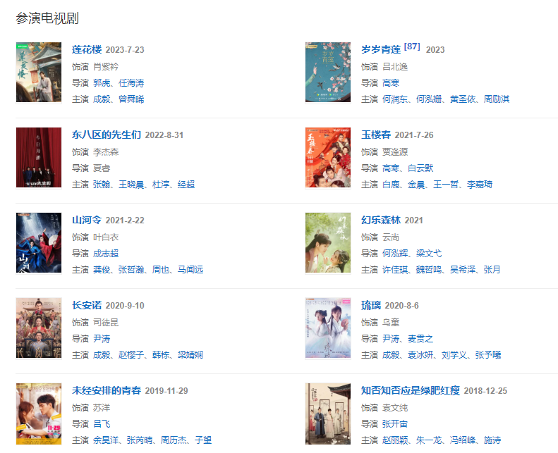 代表作品:金耳環(huán)、金玉良緣、杉杉來(lái)了、如懿傳、扶搖、琉璃、山河令、捕