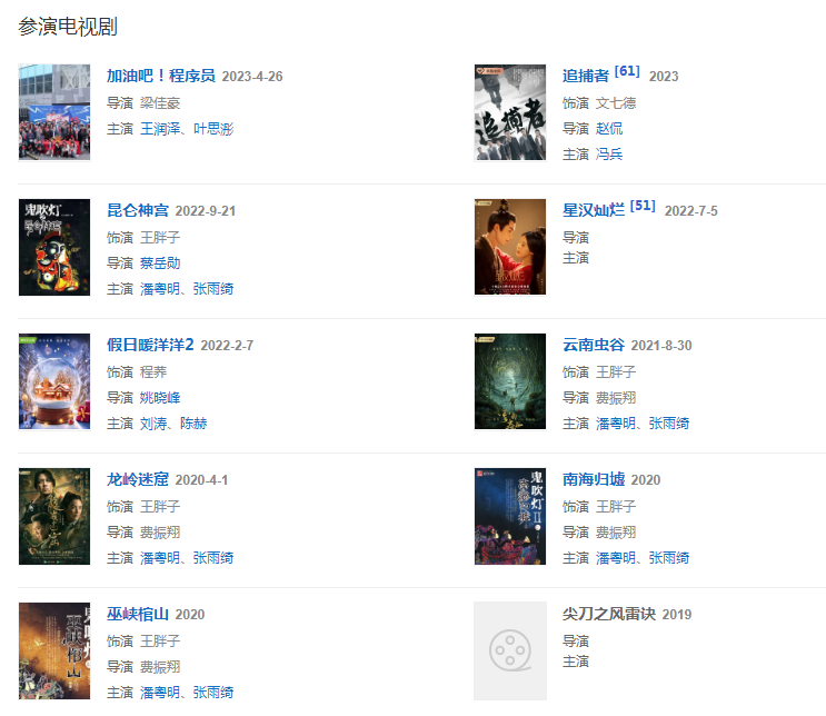 2017年,主演電視劇《伙頭軍客?!?span lang="EN-US"> ;12月8日,主演的國(guó)內(nèi)首部反電信詐騙電影《巨額來(lái)電》上映。