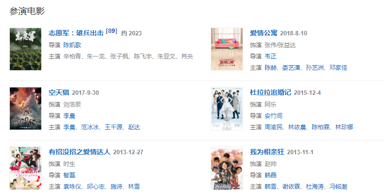 2018年8月10日,主演的愛(ài)情喜劇電影《愛(ài)情公寓》全國(guó)公映。