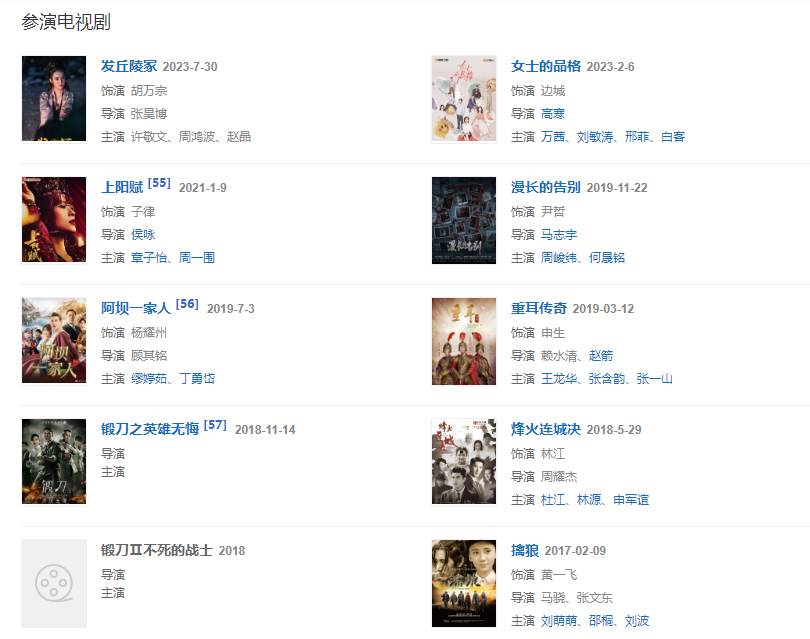 代表作品:女媧傳說(shuō)之靈珠、擒狼、鍛刀、重耳傳、情定三生、愛就是那樣簡(jiǎn)單、喜瑪拉雅王子、戰(zhàn)北平