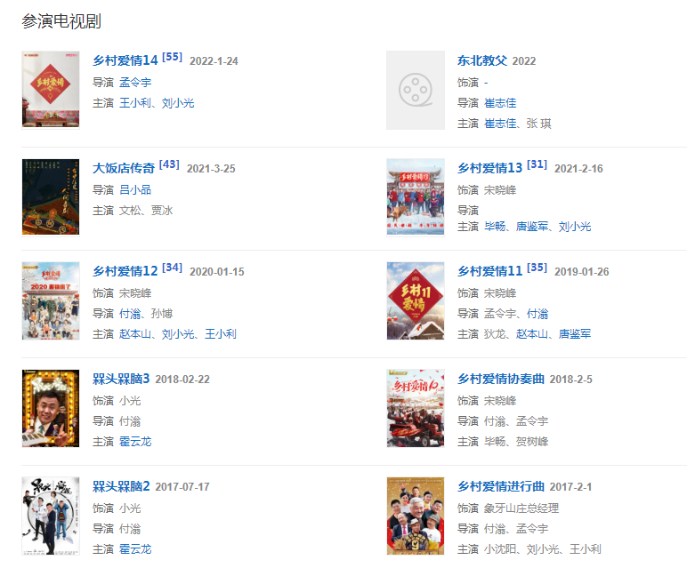 代表作品:鄉(xiāng)村愛情、山炮進城、親愛的姑娘、槑頭槑腦