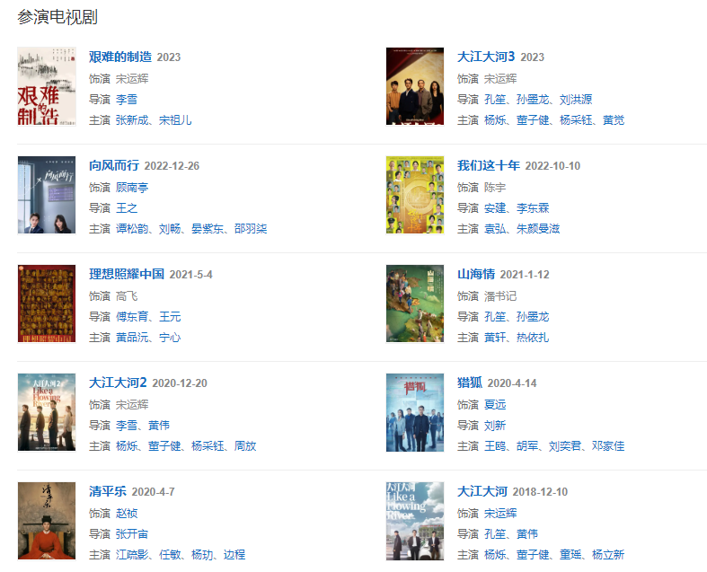 代表作品:大江大河、瑯琊榜、偽裝者、北平無戰(zhàn)事、如果蝸牛有愛情、嫌疑人x的獻身、清平樂、獵狐