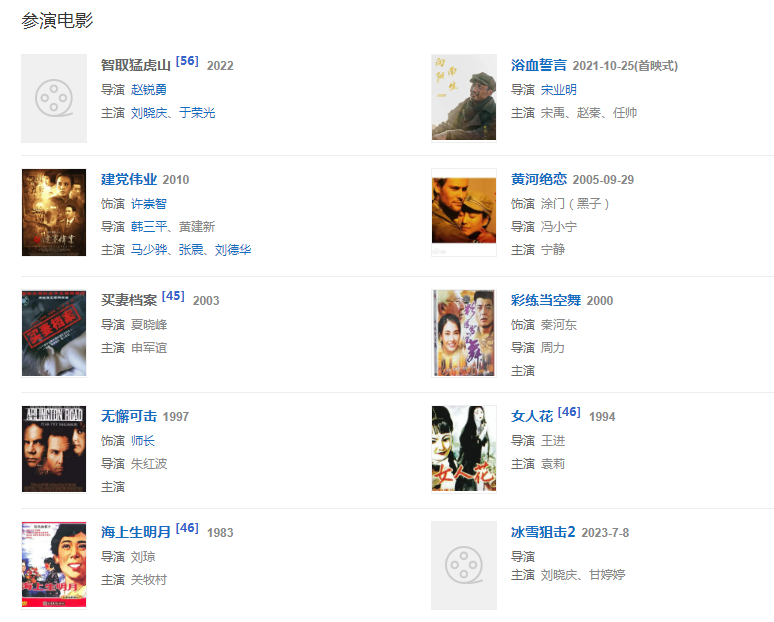 代表作品:《黃河絕戀》、《無懈可擊》、《英雄無悔》《歷史的天空》