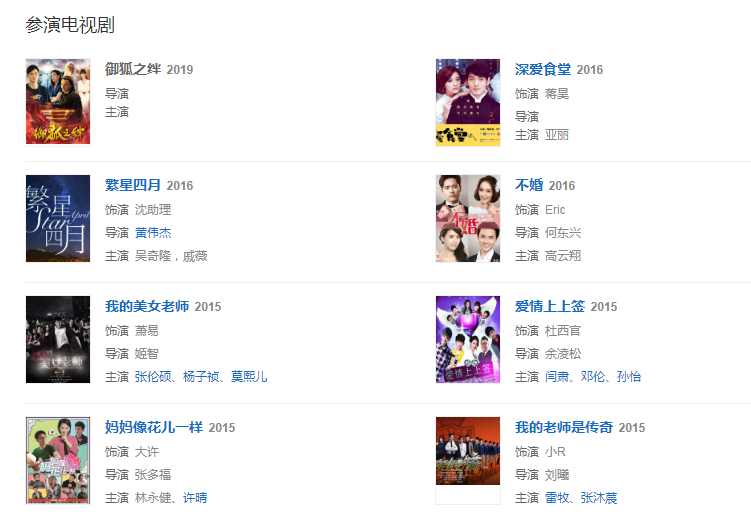 2014年參演電影《換愛(ài)七日》,在影片中飾演男主角“林浩” ;同年主演中國(guó)首部現(xiàn)代修真網(wǎng)絡(luò)劇《我的美女老師》 。