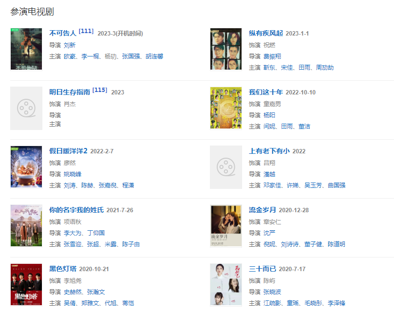 2020年,主演張曉波導(dǎo)演的都市情感電視劇《三十而已》,飾演陳嶼 。
