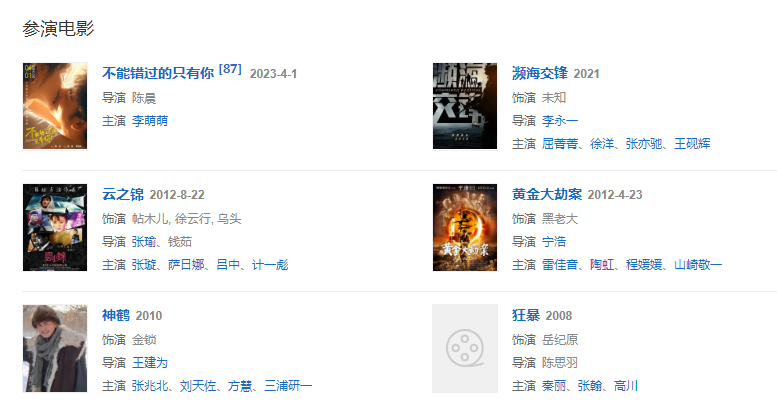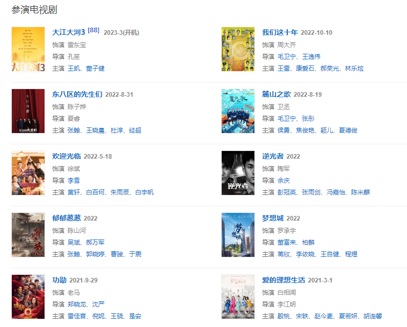 代表作品:歡樂(lè)頌、生死線、刀客家族的女人、神犬奇兵、歸還世界給你、大江大河、我們都要好好的、愛(ài)在左,情在右