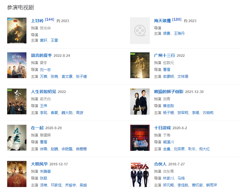 代表作品:闖關(guān)東、遠去的飛鷹、我們的法蘭西歲月、建軍大業(yè)、紅高粱、陸垚知馬俐、北上廣不相信眼淚、愛在蒼茫大地、大明風華、漂洋過海來看你、在一起主要成就:2011年第14屆上海國際電影節(jié)亞洲新晉演員獎